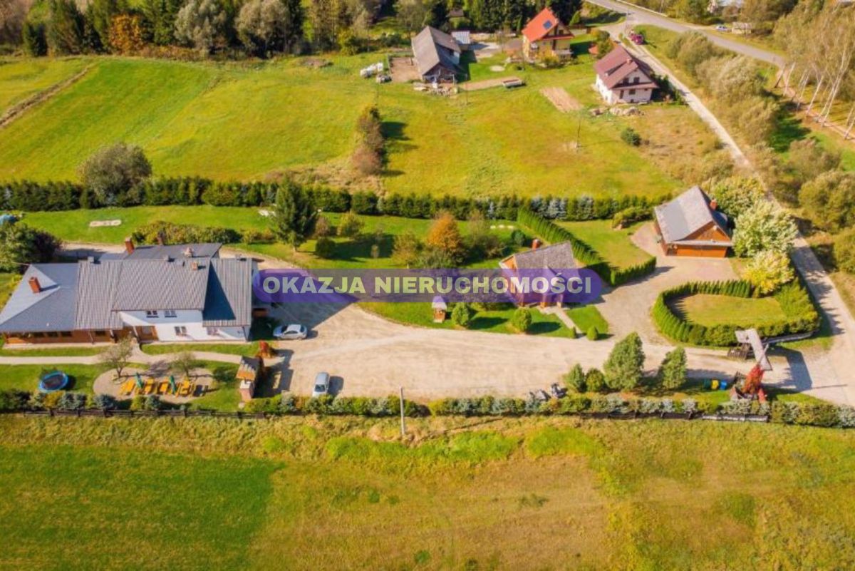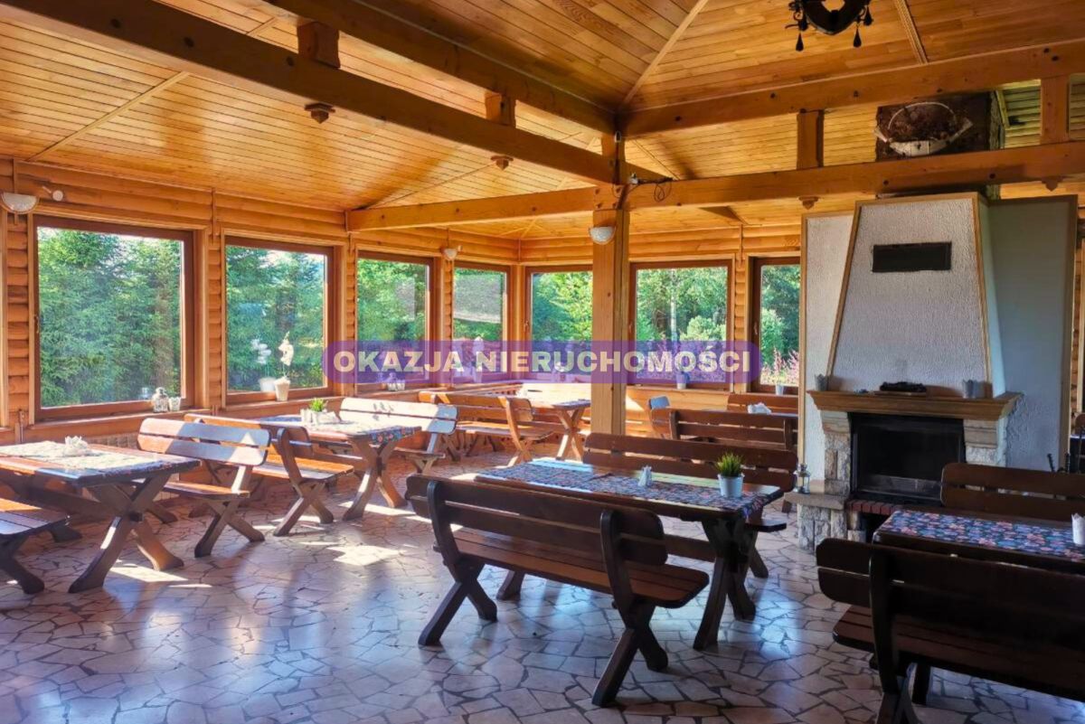 - Pensjonat - 330 m² (rok budowy 2004): 6 pokoi gościnnych z łazienkami (2-4 osobowe), apartament małżeński, gabinet masażu, przestronna jadalnia na 70 osób, sala kominkowa, recepcja, zaplecze kuchenne, kotłownia.